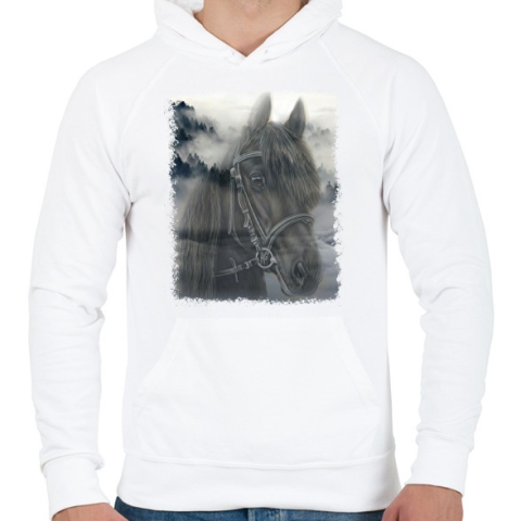 1 kép PRINTFASHION ló - Férfi kapucnis pulóver - Fehér