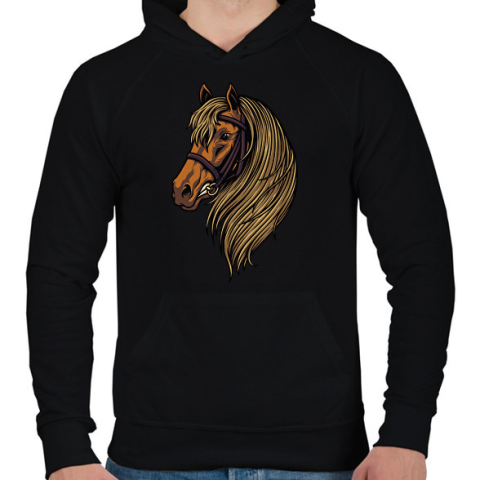 1 kép PRINTFASHION Ló - Férfi kapucnis pulóver - Fekete