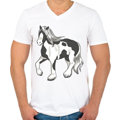 1 kép PRINTFASHION Ló - Férfi V-nyakú póló - Fehér