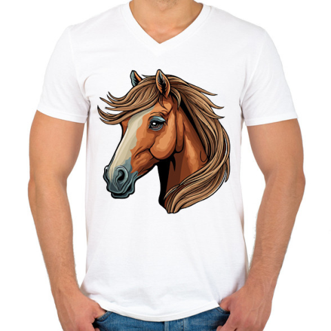 1 kép PRINTFASHION Ló - Férfi V-nyakú póló - Fehér