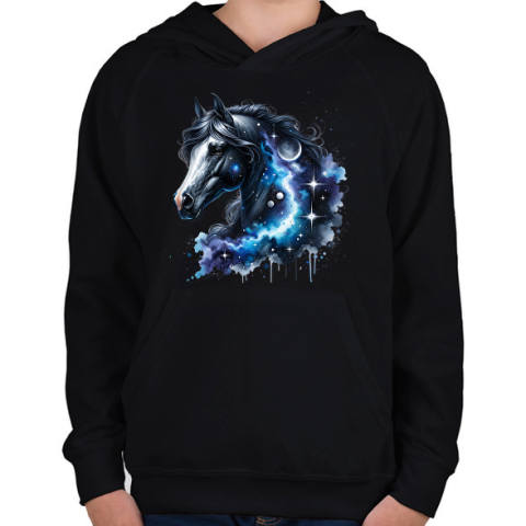 1 kép PRINTFASHION ló - Gyerek kapucnis pulóver - Fekete