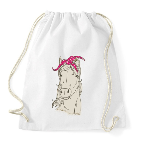 1 kép PRINTFASHION Ló lila pöttyös kendővel - Sportzsák, Tornazsák - Fehér
