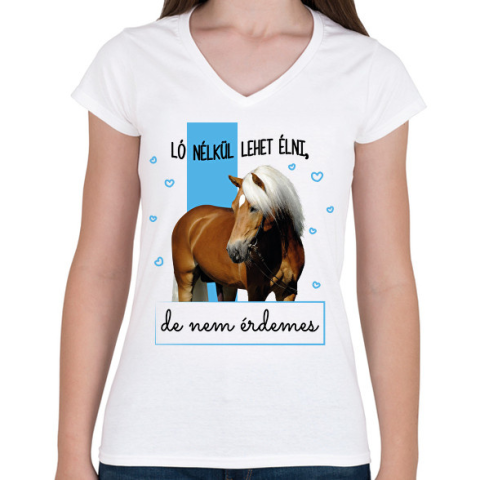 1 kép PRINTFASHION Ló nélkül lehet élni - Női V-nyakú póló - Fehér