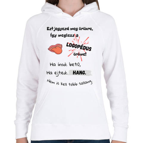 1 kép PRINTFASHION Logopédus versike - Női kapucnis pulóver - Fehér
