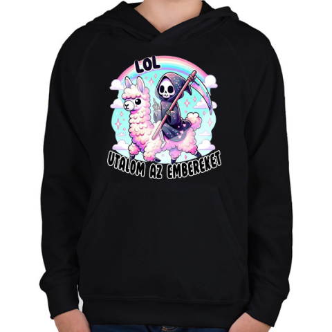 1 kép PRINTFASHION LOL, utálom az embereket - Gyerek kapucnis pulóver - Fekete