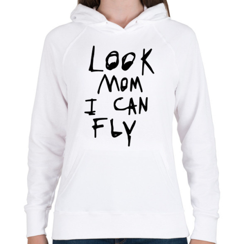 1 kép PRINTFASHION Look mom, i can fly! - Női kapucnis pulóver - Fehér