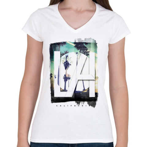1 kép PRINTFASHION Los Angeles - Női V-nyakú póló - Fehér
