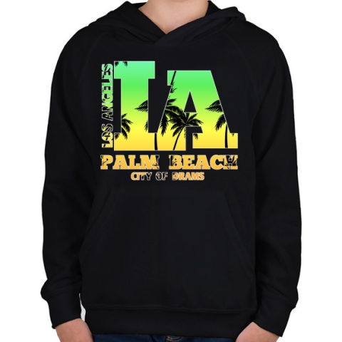 1 kép PRINTFASHION Los angeles palm beach - Gyerek kapucnis pulóver - Fekete