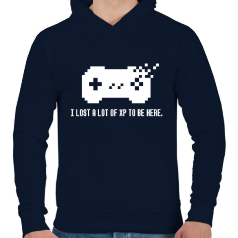 1 kép PRINTFASHION LOST A LOT OF XP - Férfi kapucnis pulóver - Sötétkék