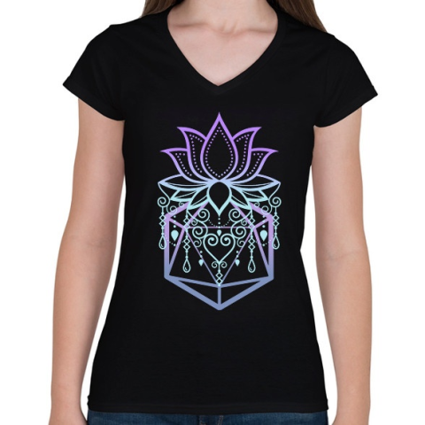 1 kép PRINTFASHION Lótusz D20 (lila) - Női V-nyakú póló - Fekete