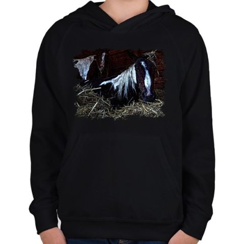 1 kép PRINTFASHION lovak az istállóban - Gyerek kapucnis pulóver - Fekete