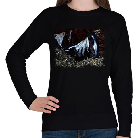 1 kép PRINTFASHION lovak az istállóban - Női pulóver - Fekete