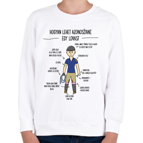 1 kép PRINTFASHION Lovas azonosítás - Gyerek pulóver - Fehér