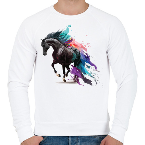 1 kép PRINTFASHION Lovas - Férfi pulóver - Fehér