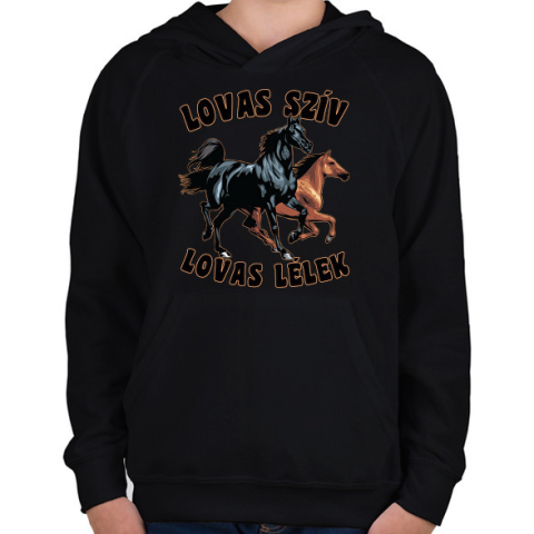 1 kép PRINTFASHION lovas - Gyerek kapucnis pulóver - Fekete