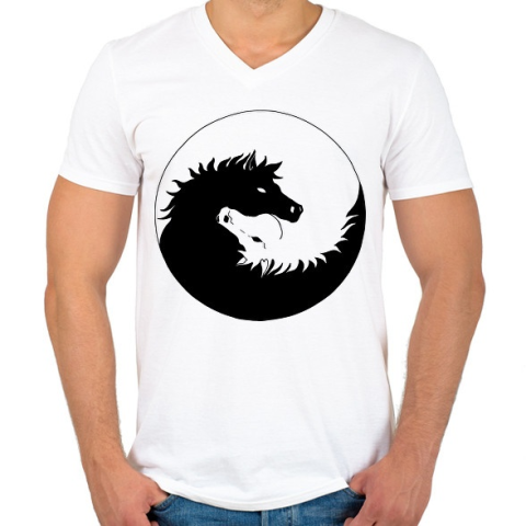 1 kép PRINTFASHION Lovas jin-jang - Férfi V-nyakú póló - Fehér
