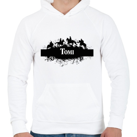 1 kép PRINTFASHION Lovas minta - Névvel - Férfi kapucnis pulóver - Fehér