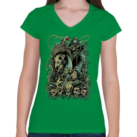 1 kép PRINTFASHION Lovas - Női V-nyakú póló - Zöld