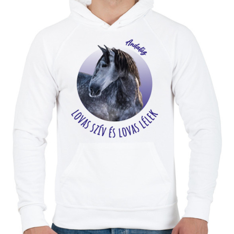 1 kép PRINTFASHION Lovas szív - Andalúz - Férfi kapucnis pulóver - Fehér