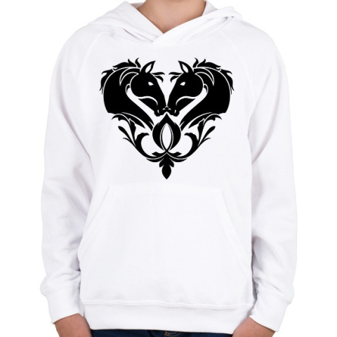 1 kép PRINTFASHION Lovas szív - Gyerek kapucnis pulóver - Fehér