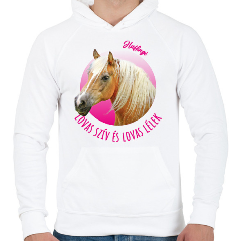 1 kép PRINTFASHION Lovas szív - Haflingi - Férfi kapucnis pulóver - Fehér