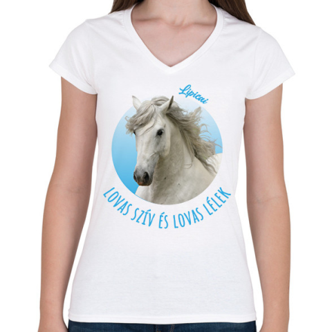 1 kép PRINTFASHION Lovas szív - Lipicai - Női V-nyakú póló - Fehér