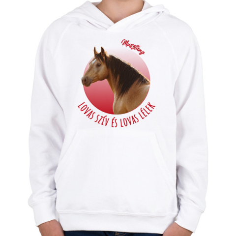 1 kép PRINTFASHION Lovas szív - Musztáng - Gyerek kapucnis pulóver - Fehér