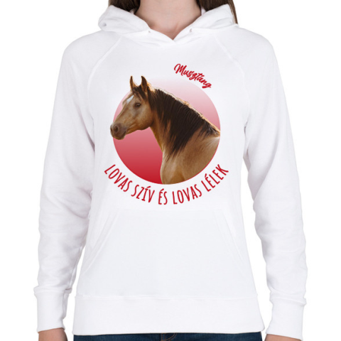 1 kép PRINTFASHION Lovas szív - Musztáng - Női kapucnis pulóver - Fehér