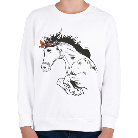 1 kép PRINTFASHION Lovas ugrás - Gyerek pulóver - Fehér