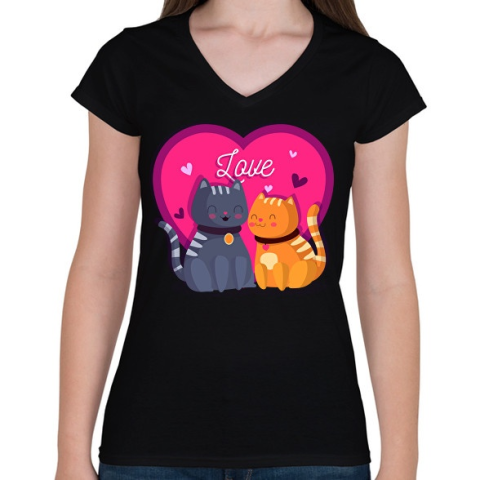 1 kép PRINTFASHION Love cats - Női V-nyakú póló - Fekete