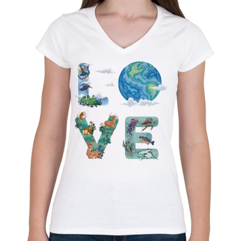 1 kép PRINTFASHION Love Föld - Női V-nyakú póló - Fehér