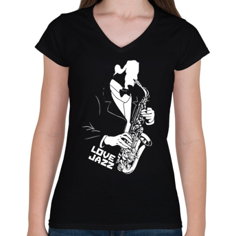 1 kép PRINTFASHION Love Jazz - Női V-nyakú póló - Fekete