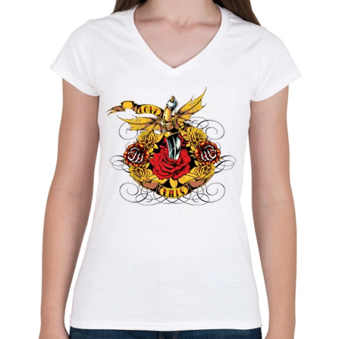1 kép PRINTFASHION Love Kills - Női V-nyakú póló - Fehér