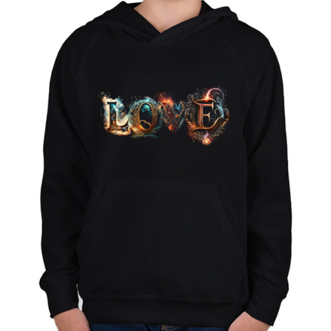 1 kép PRINTFASHION LOVE - Magic fonts - Varázslatos betűkkel írt szerelmes felirat - Gyerek kapucnis pulóver - Fekete