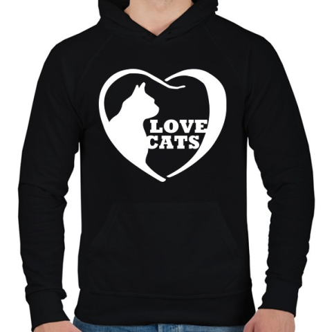1 kép PRINTFASHION Lovecats - Férfi kapucnis pulóver - Fekete