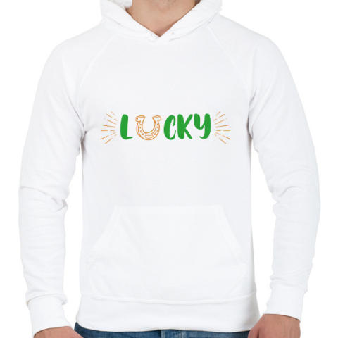1 kép PRINTFASHION Lucky - Férfi kapucnis pulóver - Fehér
