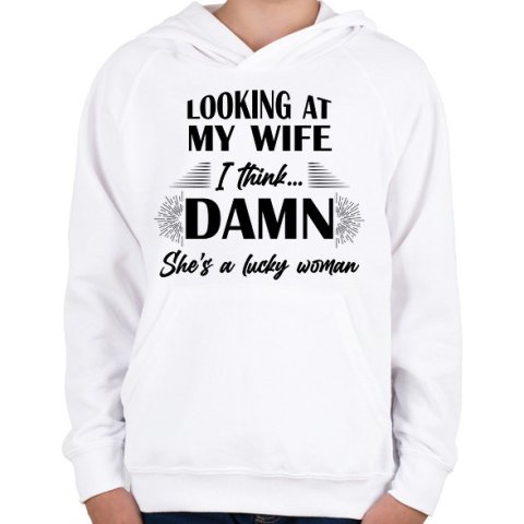 1 kép PRINTFASHION Lucky wife - Gyerek kapucnis pulóver - Fehér