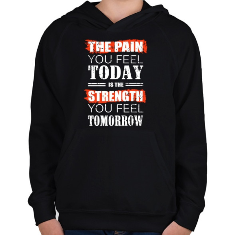 1 kép PRINTFASHION Ma fájdalom, holnap erő - Gyerek kapucnis pulóver - Fekete