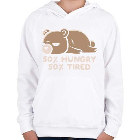 1 kép PRINTFASHION Maci - éhes és álmos 2 - Gyerek kapucnis pulóver - Fehér