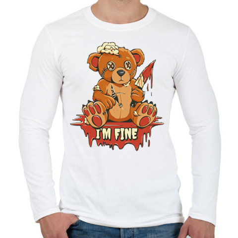 1 kép PRINTFASHION Maci jól vagyok, I am fine - Férfi hosszú ujjú póló - Fehér