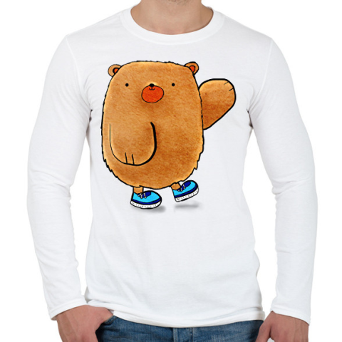 1 kép PRINTFASHION Mackó integet - Férfi hosszú ujjú póló - Fehér