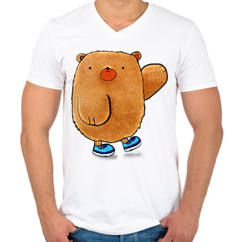 1 kép PRINTFASHION Mackó integet - Férfi V-nyakú póló - Fehér