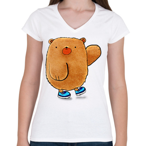 1 kép PRINTFASHION Mackó integet - Női V-nyakú póló - Fehér