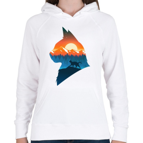 1 kép PRINTFASHION Macska a naplementében - Női kapucnis pulóver - Fehér