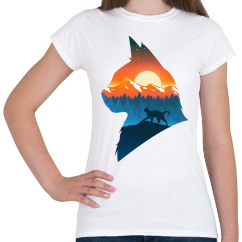1 kép PRINTFASHION Macska a naplementében - Női póló - Fehér