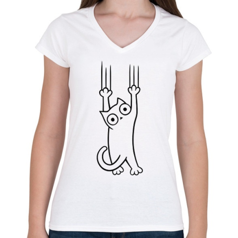 1 kép PRINTFASHION Macska a pácban! - Női V-nyakú póló - Fehér