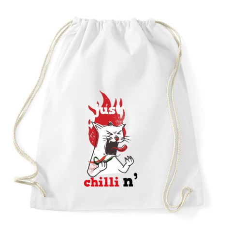 1 kép PRINTFASHION Macska csilit eszik Cat Just ChilliN - Sportzsák, Tornazsák - Fehér