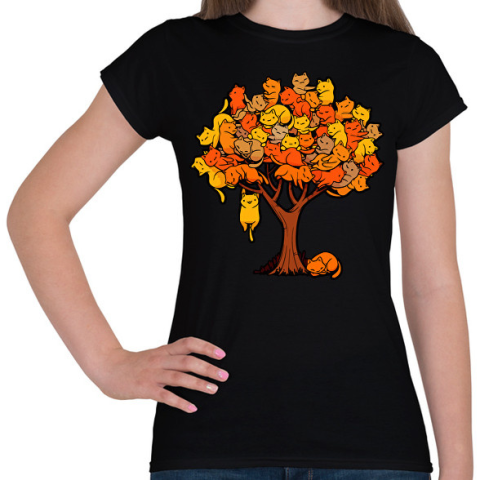 1 kép PRINTFASHION Macska fa - Női póló - Fekete
