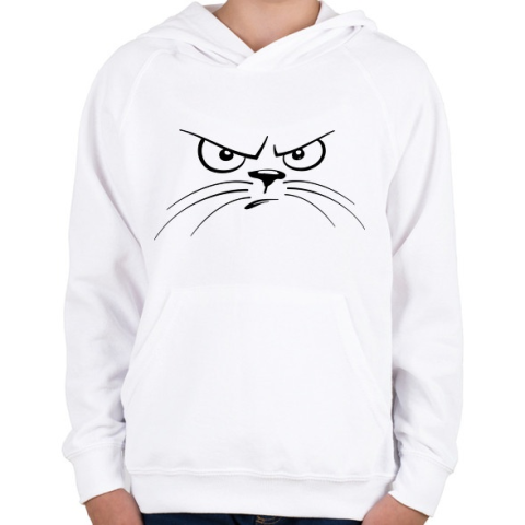 1 kép PRINTFASHION Macska fej szigorúan néz - Gyerek kapucnis pulóver - Fehér
