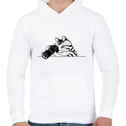 1 kép PRINTFASHION Macska fotózik - Férfi kapucnis pulóver - Fehér